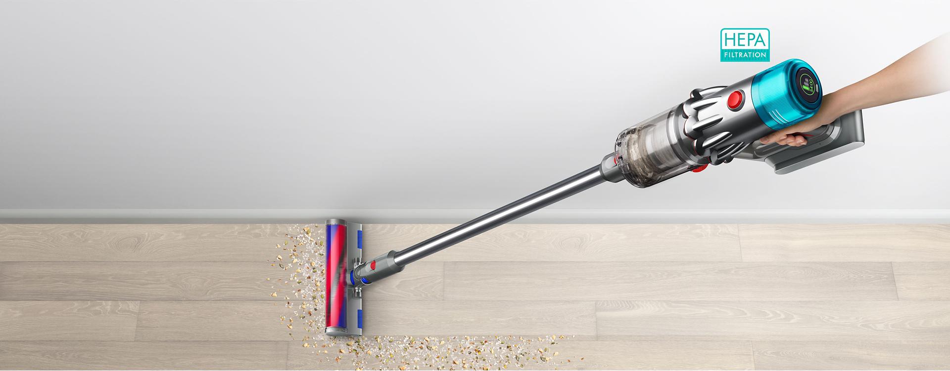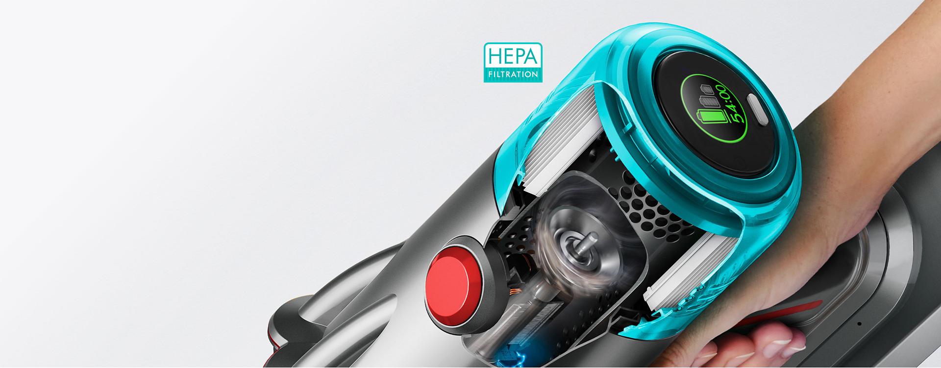 Lengviausias „Dyson“ belaidis dulkių siurblys, išsiskiriantis didele – 120 AW – siurbimo galia.